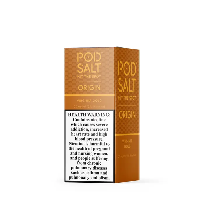 Buy POD SALT ORIGIN VIRGINIA GOLD 20MG SALTNIC 30ML at Gen Vape Dubai. This Flavor is Inspired by the famous mid-west rolling tobacco. This deep, well-roasted flavor enjoys being mild but boasts a sweet, vanilla hint to keep you coming back for more. Blended with our award-winning Nicotine Salts formula.