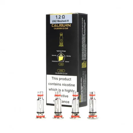 The Uwell Caliburn G2 replacement coils are the ideal choice for mouth-to-lung (MTL) or restricted direct-to-lung (DTL) vapers that use the new Caliburn G2 Pod Vape Kit. They are available in a pocket-sized pack of 4 replacement coils which have a resistance of 1.2ohms.