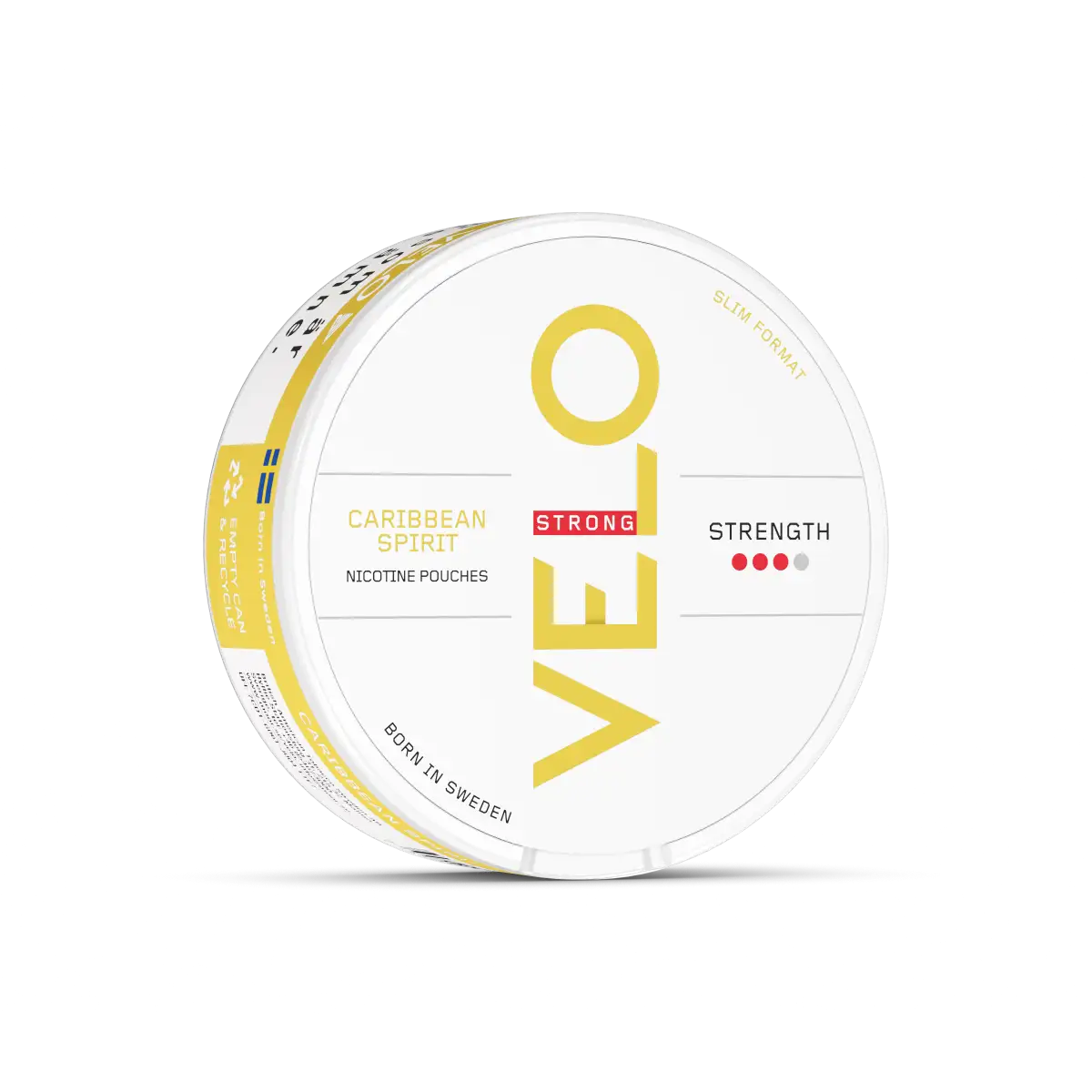 Velo Caribbean Spirit Taste ” with the taste of refreshing coconut and pineapple in a strong portion. Born in Sweden”