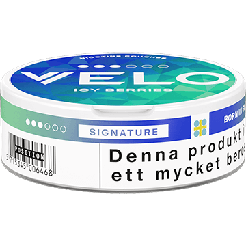 VELO is a brand that manufactures tobacco-free snus products. The brand provides a wide variety of flavors and strengths, The Icy Berries is one of a number of new fruit-themed products that new VELO sensation, introduced in 2024. Others include the Orange Spark, Zest Flame, Mango Flame, Cinnamon Flame, and Lime Flame, while the Cool storm has renamed to Pepperemint Storm.