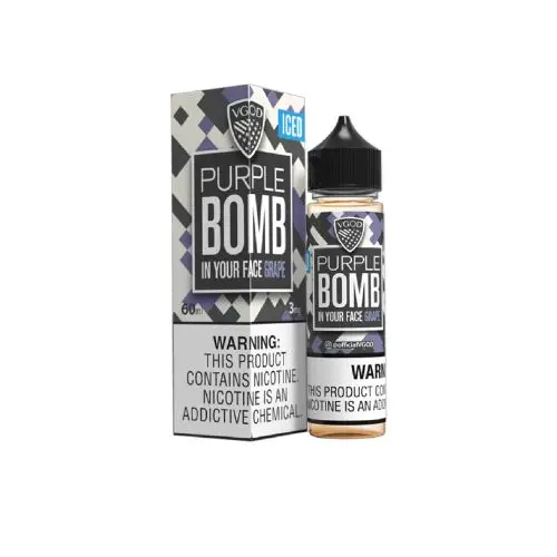 Purple Bomb Ice: VGOD Purple Bomb Ice delivers a frozen chill alongside a powerful punch of delicious Concord grape juice sweetened with a hint of an added sugary grape candy and a frosty chill for the finish.