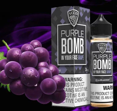 Purple Bomb Ice: VGOD Purple Bomb Ice delivers a frozen chill alongside a powerful punch of delicious Concord grape juice sweetened with a hint of an added sugary grape candy and a frosty chill for the finish.